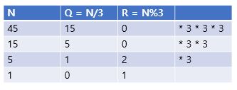 10진수를 3진수로 바꾸기 위해선 아래와 같은 과정이 필요하다.