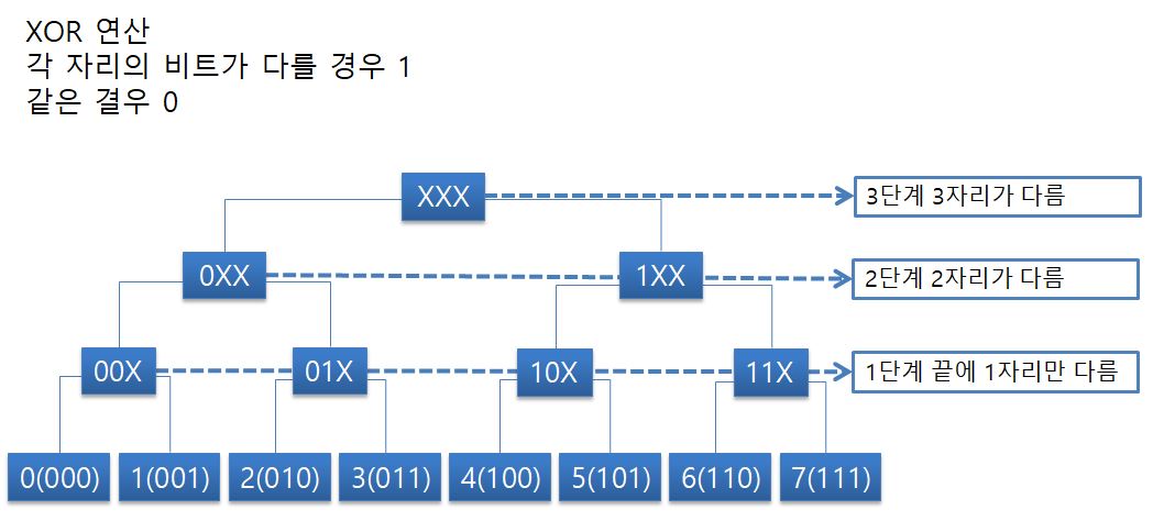 간단하게 설명하자면 XOR 연산은 각 자리의 비트가 다를 경우 1 같을 경우 0이 나오게 되는데