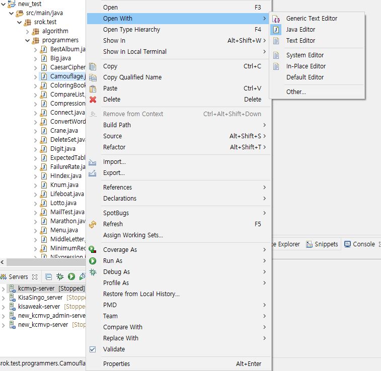 간단하게는 우클릭 -> Open With -> Editor 선택을 통해 원하는 Editor를 선택할 수 있습니다.