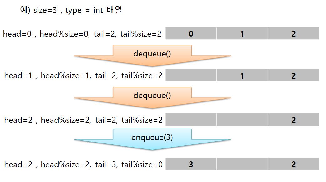 * 배열의 index가 0,1,2,3...size,0,1,2... 순환되도록 구현<br>